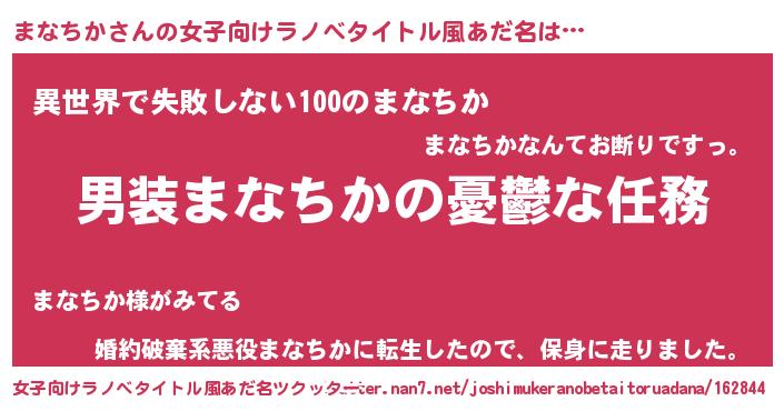 | 胡散臭い通販商品みたいなあだ名 | 『前代未聞の健康食品…その名も「まなちか」』 |