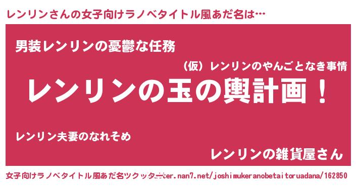 | ヒーロー風カッコイイあだ名 | 『ウルトラレンリンマン』『暗黒騎士レン』 |