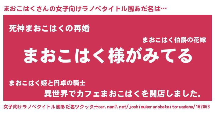 | 男性向けラノベタイトル風あだ名 | 『まおこはくの嫁は女の子じゃないと思った?』 |