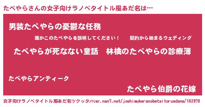 | ヒーロー風カッコイイあだ名 | 『仮面タペダー』『ウルトラたぺやらマン』 |