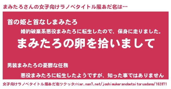 | 意味不明あだ名 | 『とにかく怪しいまみたろ』 |