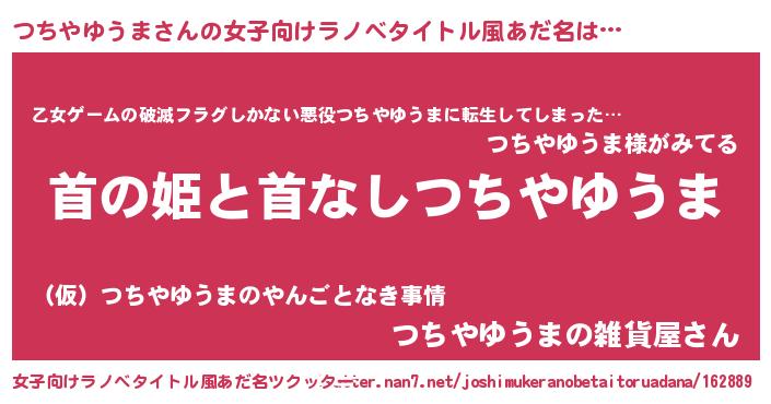 | 意味不明あだ名 | 『住所不定無職つちやゆうま(47歳)』 |