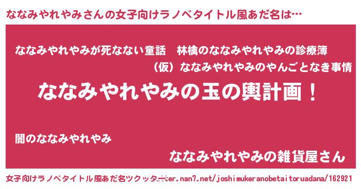 | 男性向けラノベタイトル風あだ名 | 『転生したらななみやれやみだった件』 |