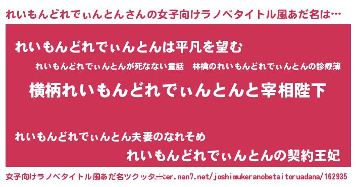 | ヘコむあだ名 | 『れいぷりん』『なまこ酢』 |