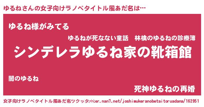 | 男性向けラノベタイトル風あだ名 | 『緋弾のユルネ』『魔弾の王とゆるね』 |