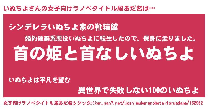 | 男性向けラノベタイトル風あだ名 | 『はたらくいぬちよさま!』 |
