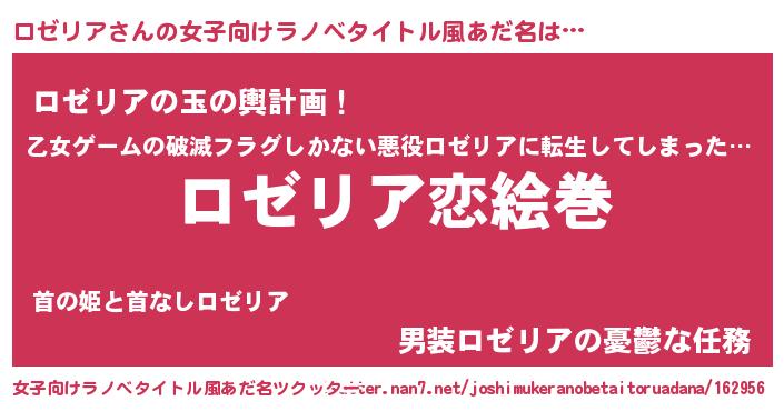 | 男性向けラノベタイトル風あだ名 | 『ノーゲーム・ノーロゼリア』 |