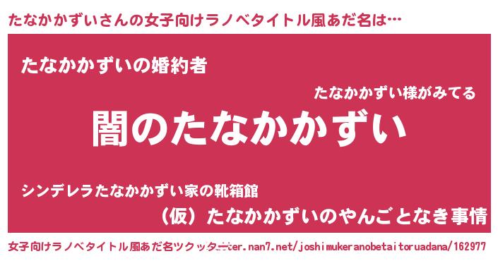 | 男性向けラノベタイトル風あだ名 | 『Re:たなかかずいから始める異世界生活』 |