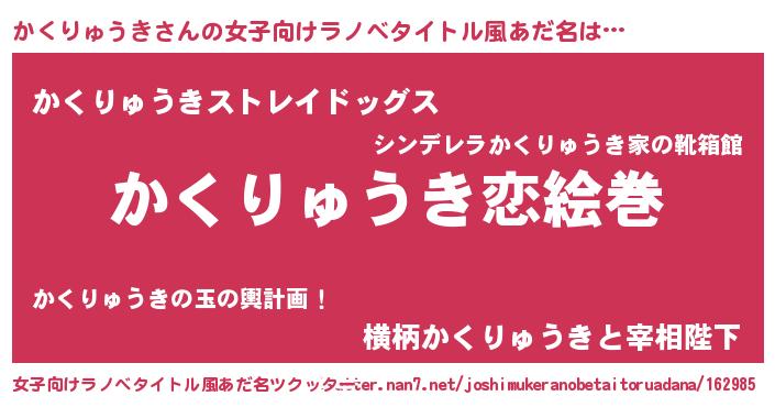 | 男性向けラノベタイトル風あだ名 | 『おまえをオタクにしてやるから、俺をかくりゅうきにしてくれ! 』 |