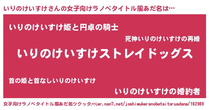 | 男性向けラノベタイトル風あだ名 | 『Re:いりのけいすけから始める異世界生活』 |