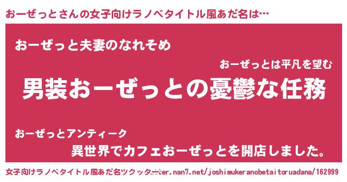 | ヘコむあだ名 | 『おーぜっと(遠い目)』『おーを』 |