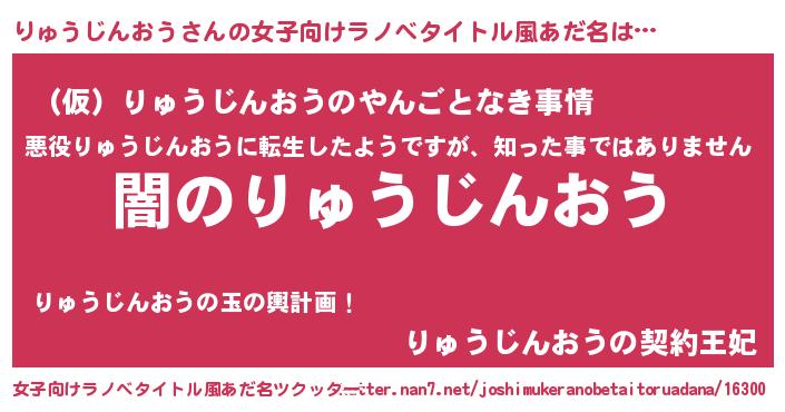 | 意味不明あだ名 | 『自称りゅうじんおう』 |