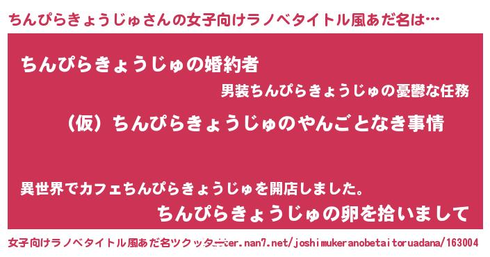 | 男性向けラノベタイトル風あだ名 | 『ちんぴらきょうじゅの憂鬱』 |