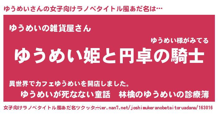 ゆうめいさんの女子向けラノベタイトル風あだ名