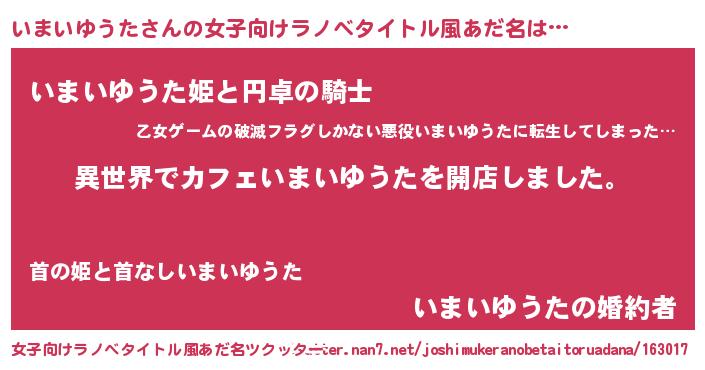 | 男性向けラノベタイトル風あだ名 | 『誰もが恐れるあのいまいゆうたが、ぼくの専属メイドになるようです。』 |