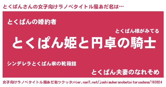 | 胡散臭い通販商品みたいなあだ名 | 『モテモテ間違いなしブレスレット…その名も「とくぱん」』 |