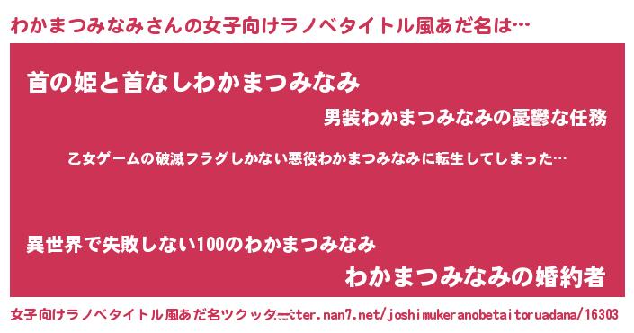 | 意味不明あだ名 | 『住所不定無職わかまつみなみ(14歳)』 |