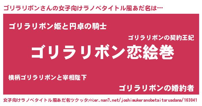 | 男性向けラノベタイトル風あだ名 | 『ノーゲーム・ノーゴリラリボン』 |