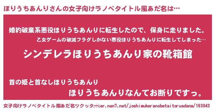 | 胡散臭い通販商品みたいなあだ名 | 『ガンによく効くアガリクス…その名も「ほりうちあんり」』 |