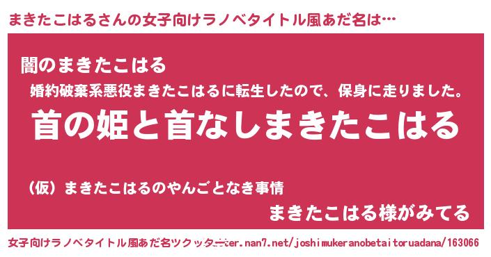| 男性向けラノベタイトル風あだ名 | 『はたらくまきたこはるさま!』 |