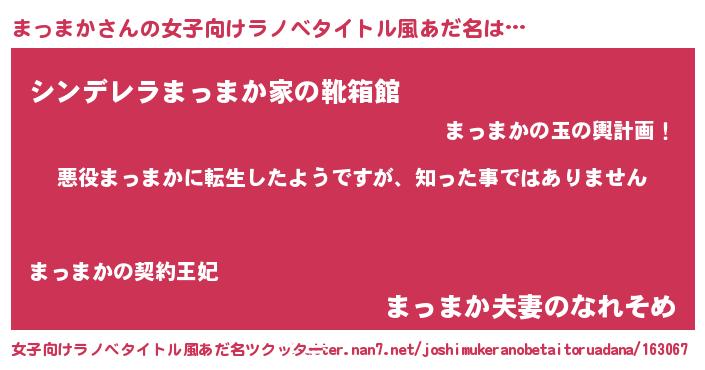 | 男性向けラノベタイトル風あだ名 | 『この素晴らしい世界にまっまかを!』 |