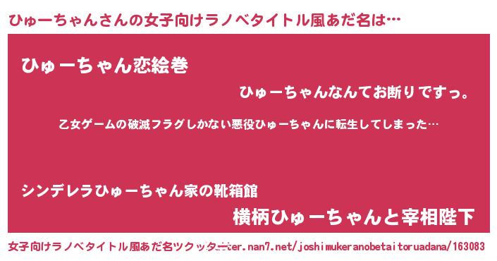 | ヘコむあだ名 | 『ひゅーちゃん(爆)』『ひゅにゅー』 |