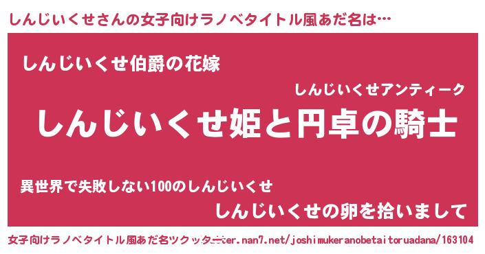 | 男性向けラノベタイトル風あだ名 | 『シンジイクセアートオンライン』 |