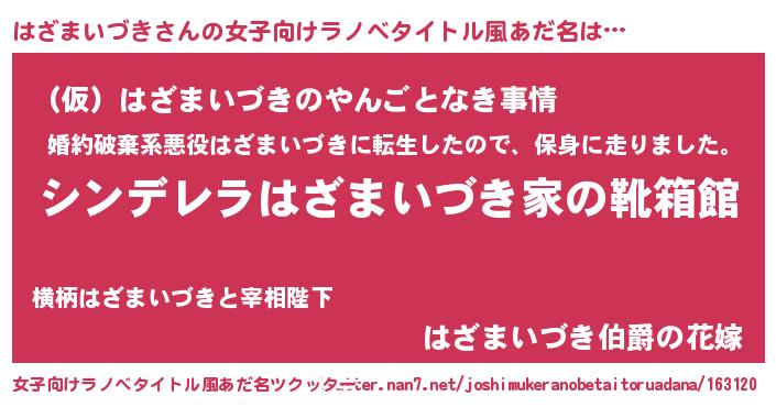 | 欧米人風あだ名 | 『はざまいづき・ステッグマイヤー』 |