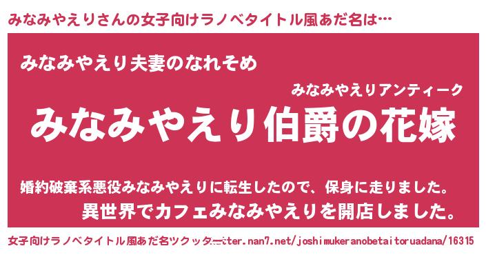 | 欧米人風あだ名 | 『みなみやえりクリステル』 |