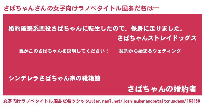 | 男性向けラノベタイトル風あだ名 | 『サバチャンアートオンライン』 |