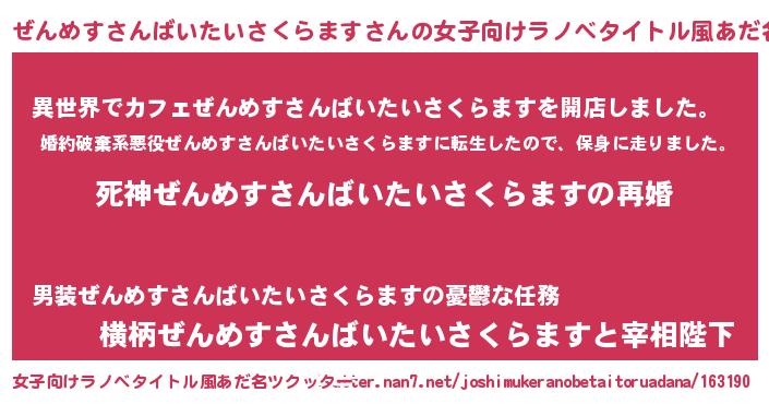 | ヘコむあだ名 | 『ぜんめすさんばいたいさくらます(笑)』 |
