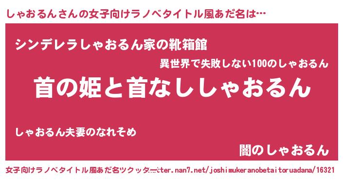 | 意味不明あだ名 | 『自称しゃおるん』『永久保存しゃおるん』 |