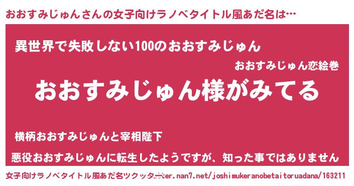 | 男性向けラノベタイトル風あだ名 | 『おおすみじゅんの嫁は女の子じゃないと思った?』 |