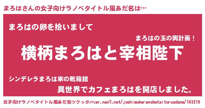 | 男性向けラノベタイトル風あだ名 | 『まろはに滅ぼされるだけの簡単なお仕事です』 |
