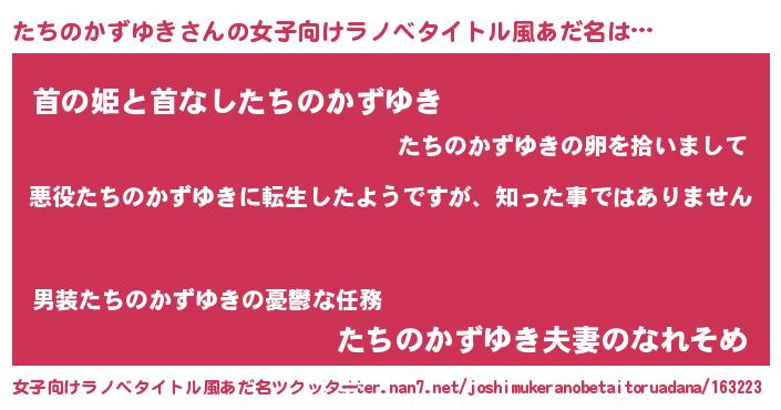 | 男性向けラノベタイトル風あだ名 | 『この素晴らしい世界にたちのかずゆきを!』 |
