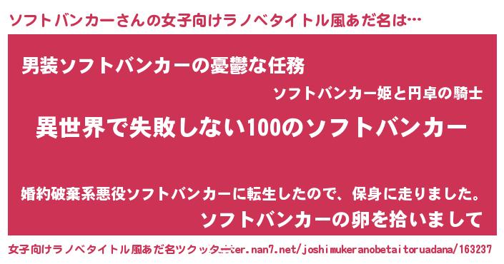 | 胡散臭い通販商品みたいなあだ名 | 『絶対に幸福をもたらす水素水…その名も「ソフトバンカー」』 |