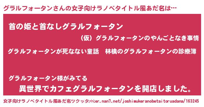 | ヘコむあだ名 | 『グラルフォータン(小並感)』『グラふぇ~』 |