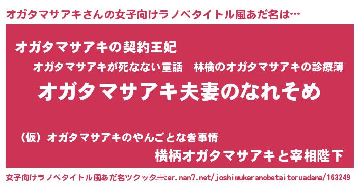 | ヘコむあだ名 | 『オガタマサアキ(笑)』『オガふぇ~』 |