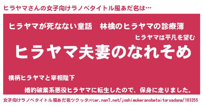 | 料理風あだ名 | 『ヒラヤマのトマト煮』『ヒラヤマごはん』 |
