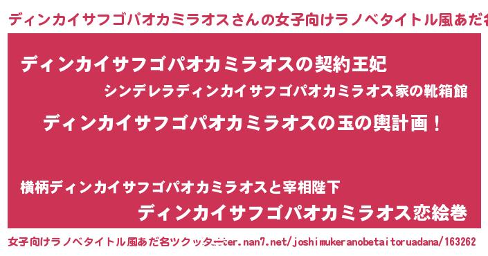 | 男性向けラノベタイトル風あだ名 | 『ディンカイサフゴパオカミラオス~年齢イコール彼女いない歴の魔法使い~』 |
