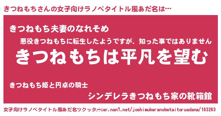 | 男性向けラノベタイトル風あだ名 | 『ダンジョンにきつねもちを求めるのは間違っているだろうか』 |