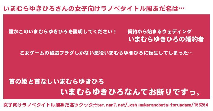 | 男性向けラノベタイトル風あだ名 | 『魔弾の王といまむらゆきひろ』 |