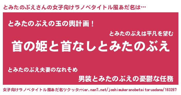 | 男性向けラノベタイトル風あだ名 | 『はたらくとみたのぶえさま!』 |