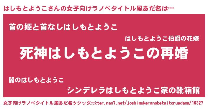 | 男性向けラノベタイトル風あだ名 | 『ノーゲーム・ノーハシモトヨウコ』 |