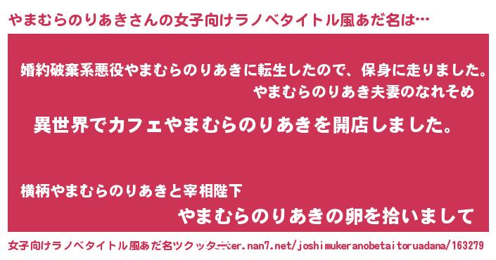 | 男性向けラノベタイトル風あだ名 | 『誰もが恐れるあのやまむらのりあきが、ぼくの専属メイドになるようです。』 |
