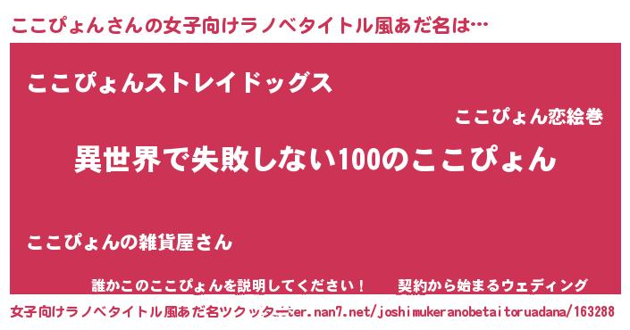 | 胡散臭い通販商品みたいなあだ名 | 『絶対に幸福をもたらす水素水…その名も「ここぴょん」』 |