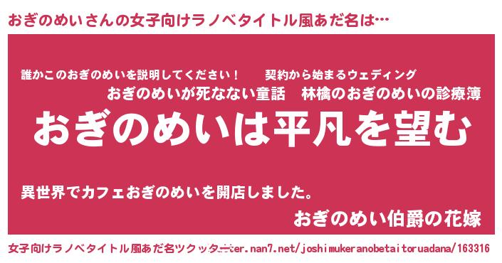 | 男性向けラノベタイトル風あだ名 | 『ダンジョンにおぎのめいを求めるのは間違っているだろうか』 |