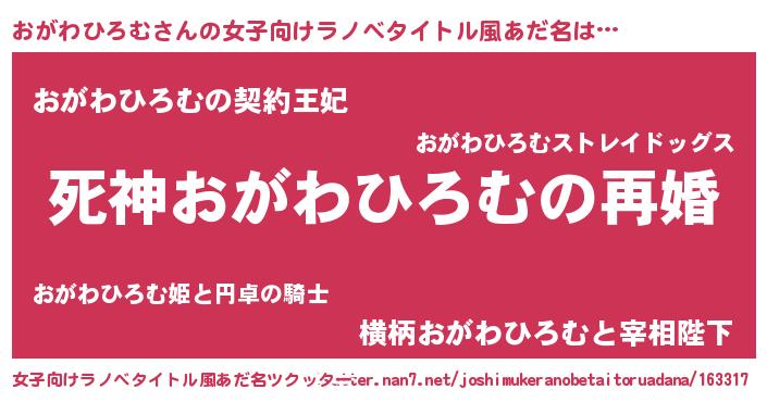 | 男性向けラノベタイトル風あだ名 | 『ノーゲーム・ノーオガワヒロム』 |