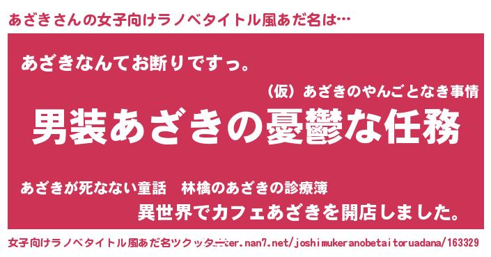 | 男性向けラノベタイトル風あだ名 | 『うちのあざきが世界を掌握している!』 |