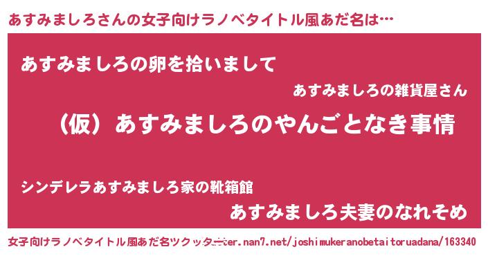 | 男性向けラノベタイトル風あだ名 | 『あすみましろの憂鬱』 |